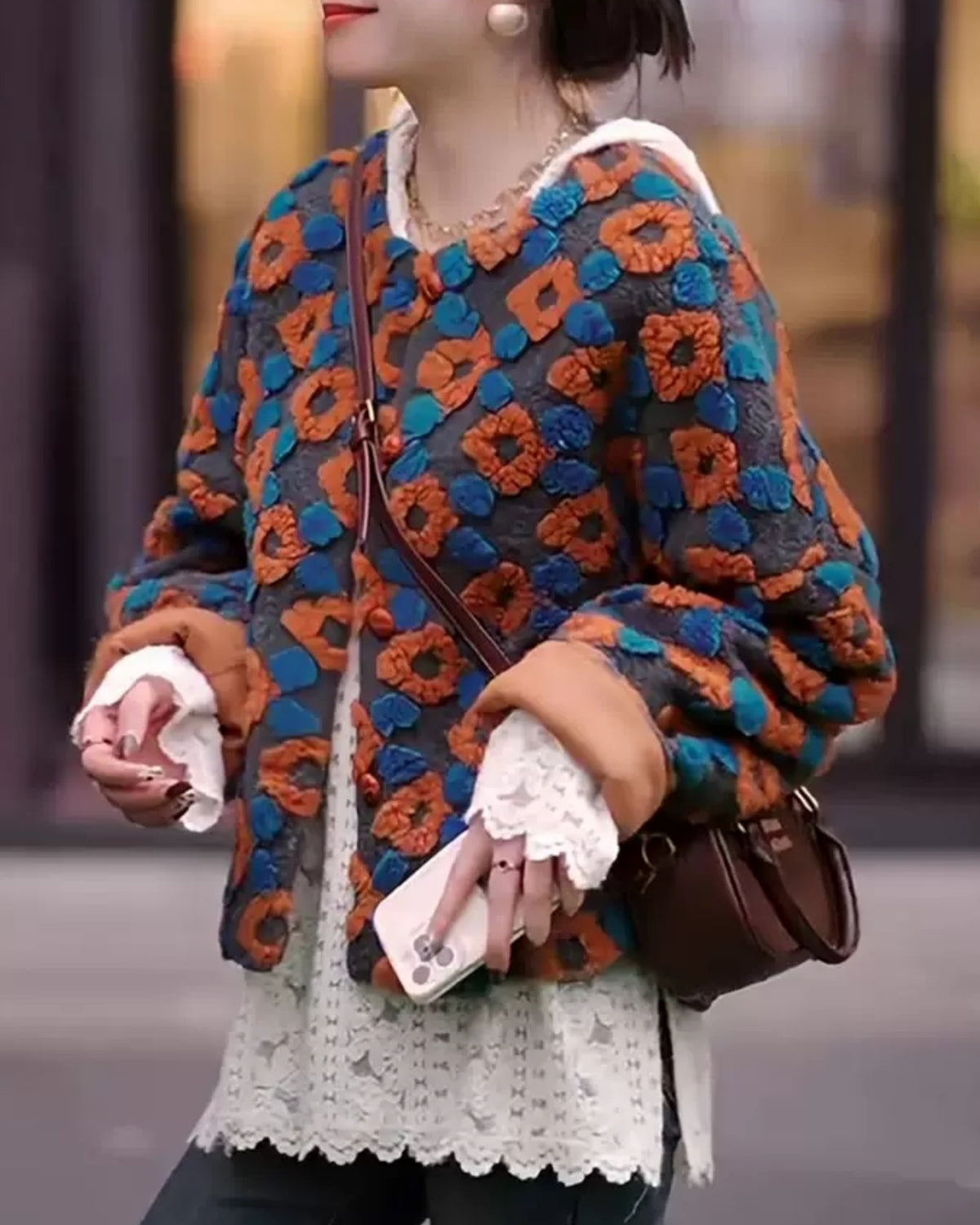 立体的な花柄が目を引く北欧レトロなテキスタイルジャケットに、