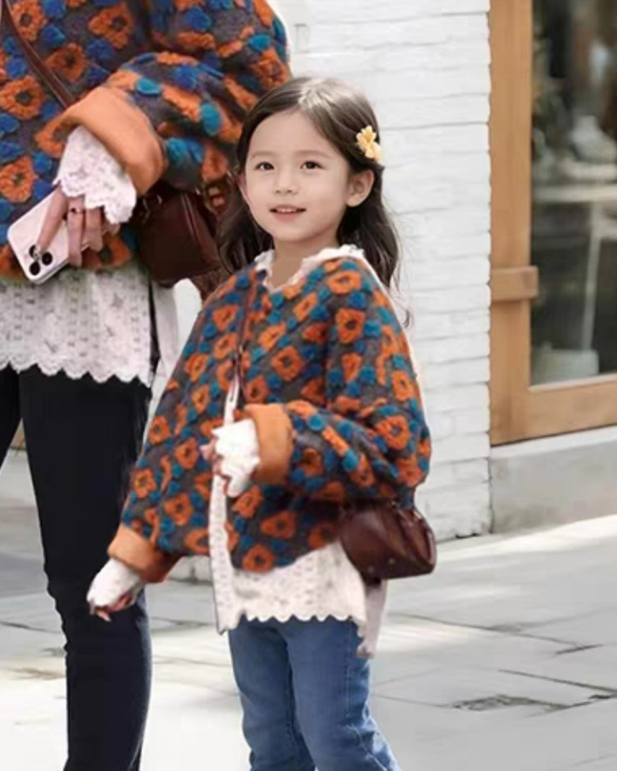 北欧レトロのテキスタイルジャケット(透かし編みフーディートップスset)