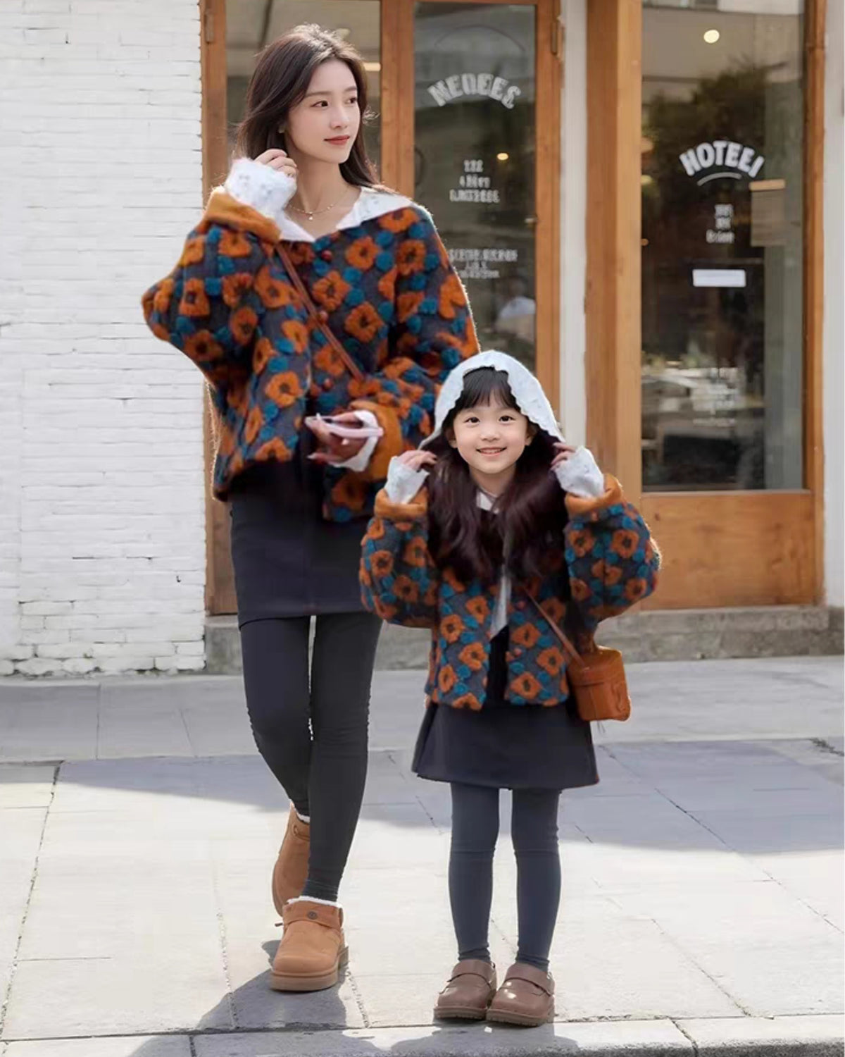 【北欧レトロのテキスタイルジャケット(透かし編みフーディートップスset)】